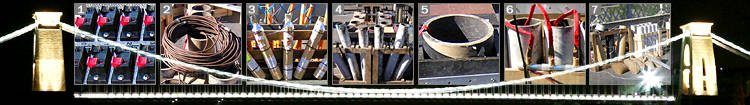with mines and comets in different colours all along the bridge.