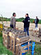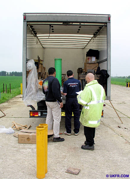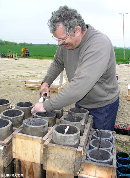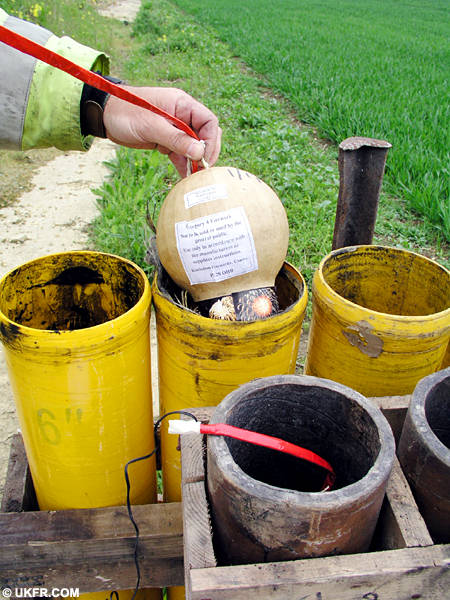 Loading a 150mm (six inch) Silver Peony with Red Pistil shell.