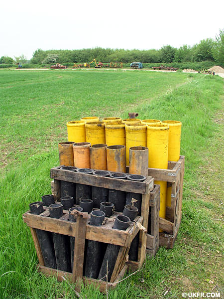 A rack of smaller card tubes (angled) and larger plastic tubes