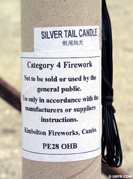 candle. Note the cat 4 warning on this 50mm firework. 14: